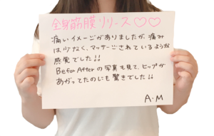 全身筋膜リリースを受けて、痛いイメージがありましたが、痛みは少なく、