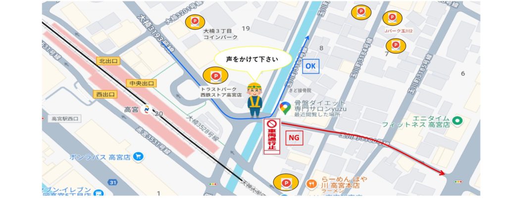 車でお越しの方は大変恐れ入りますが近隣のコインパーキングをご利用ください。